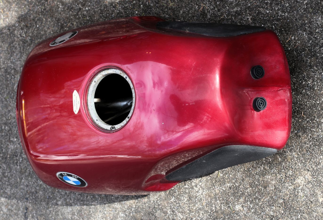 Fair condition Mystic Red fuel tank for all K75RT, K1100RS and K1100LT bikes built from 1/93. Does not include internals. This one needs some work. Has melted fuel pump damper and gummed up gas inside that needs to be cleaned out. Paint is OK and there is a noticeable ding near the gas cap opening.