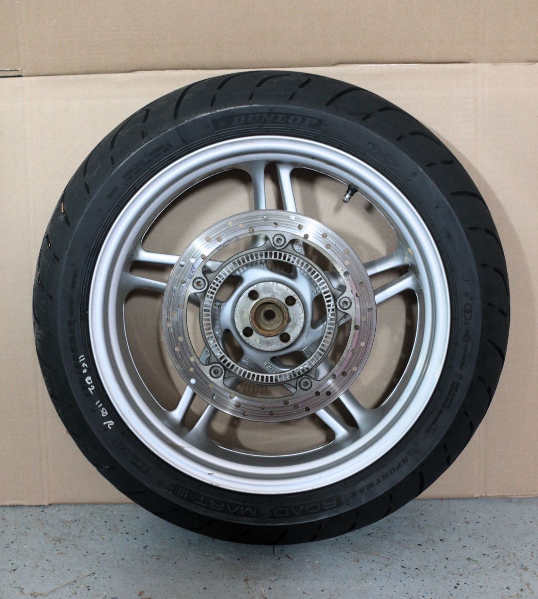 R1100S (Up to 1/01 Non-ABS) & R1150(All) & R1100S (From 2/01 ABS & Non-ABS) 5 Spoke 5X17 Rear Wheel, Silver W/Rotor & Dunlop Roadsmart 3 Tire