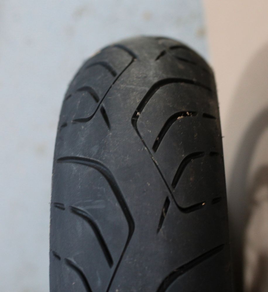 Good condition 5 spoke 5X17 rear wheel to fit early model (up to 1/01) non ABS R11S & also all R1150 bikes (ABS & non ABS) and R1100S ABS & Non-ABS (From 2/01). Will not fit R1100S ABS bikes built up to 1/01. Has some minor but noticeable scratches. Has a Dunlop Road Smart 3 170/60X17 tire with 90% tread remaining. BMW now gets over $1000 for a new one. Includes the rotor which measures 4.55mm.