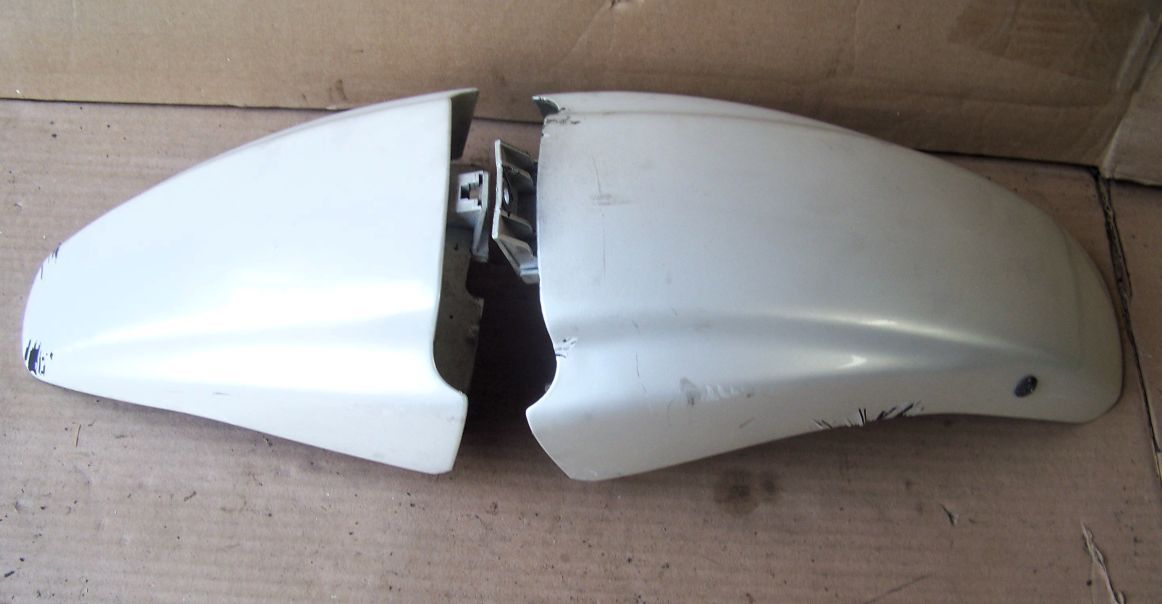 Good usable condition front fender, front and rear halves in Pearl Silver (678 White) for all K1004V and K1100RS bikes. Has some cracks in the paint but no rash.