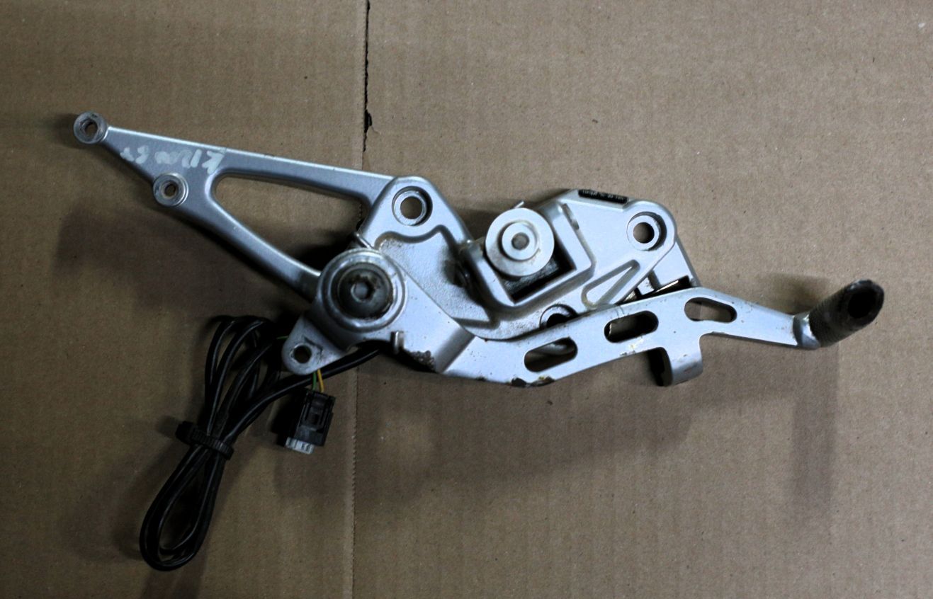 Good condition right front footpeg mount without peg for all K1200RS/GT bikes built through 2005, includes the brake pedal which is slightly bent but functions normally. BMW gets an incredible $500 + for these parts new, save big here!