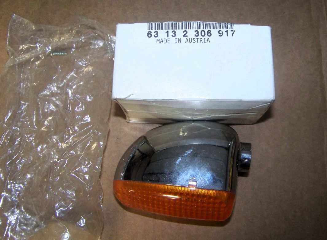 NEW in the box left front or right rear turn signal, chrome with amber lens, for all R1200C bikes.